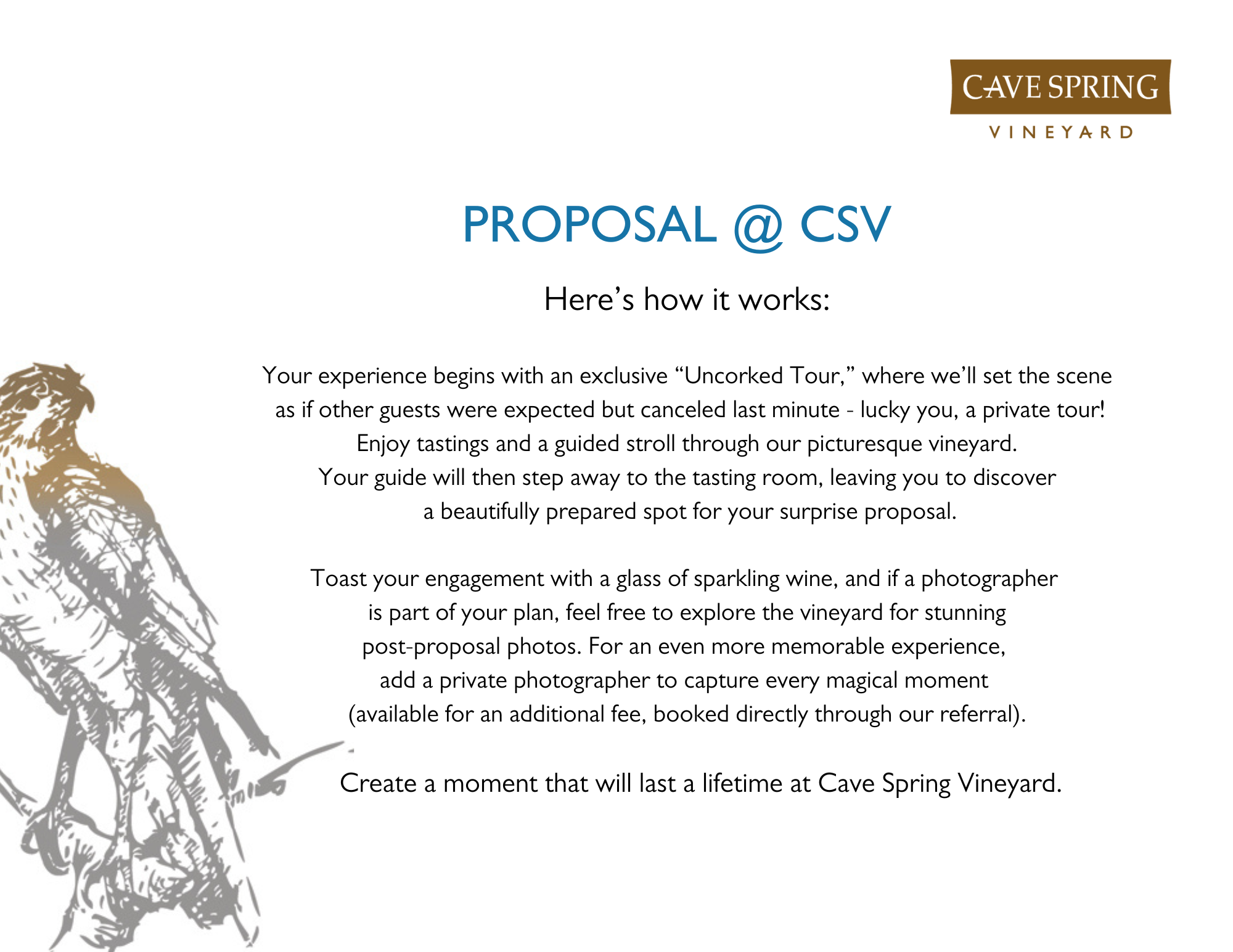 Planning to pop the question? Look no further than Cave Spring Vineyard, nestled along the breathtaking Beamsville Bench. Our vineyard and opulent tasting room provides the perfect, romantic backdrop for an unforgettable engagement.