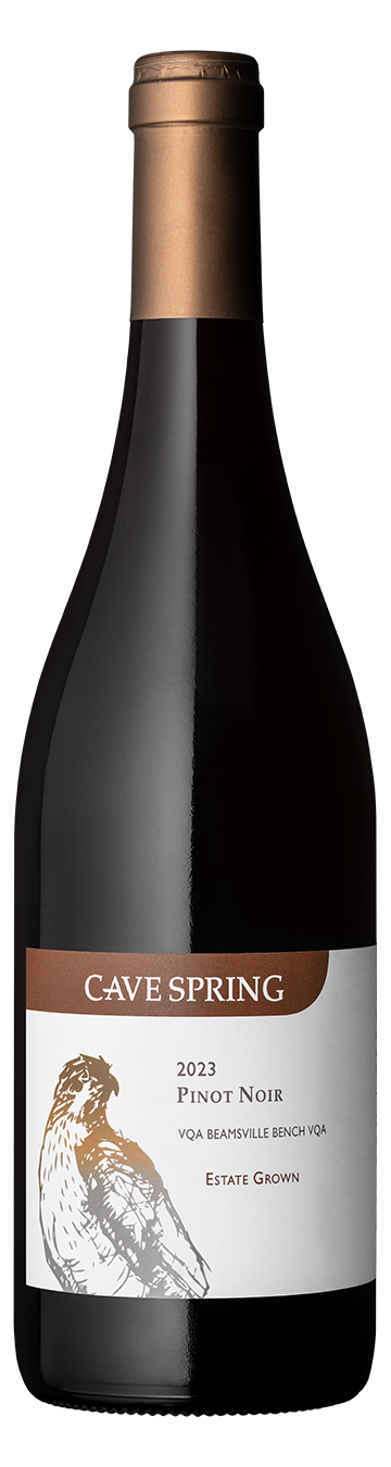 This wine originates from our Cave Spring Vineyard, nestled on a hillside of the Niagara Escarpment overlooking Lake Ontario, known as the Beamsville Bench. Along this gentle slope, limestone-clay soil, elevation and moderating onshore breezes combine to produce an elegant Pinot Noir with earthy nuances and silky textures true to our terroir.